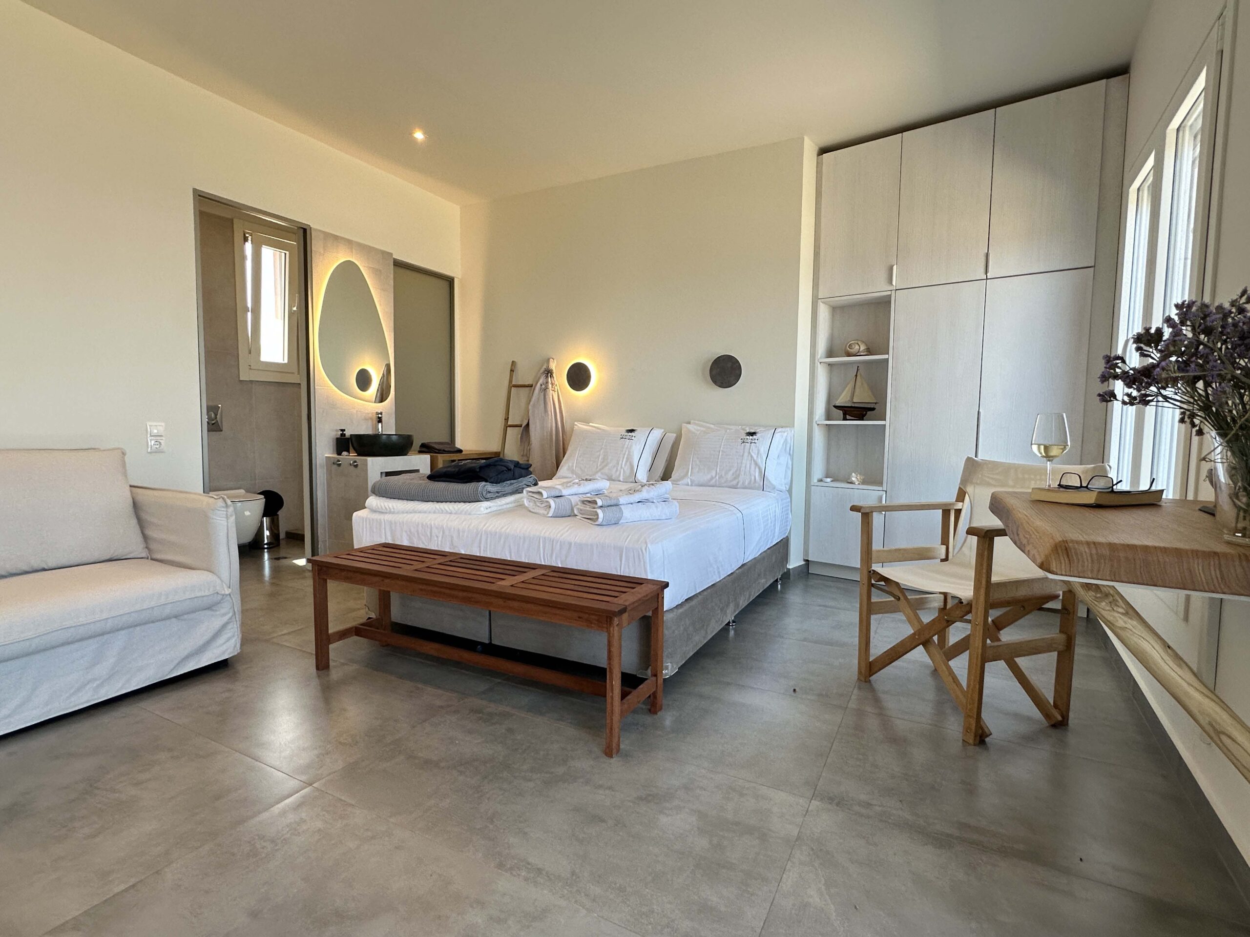 Με σπιτική ατμόσφαιρα, λιτή διακόσμηση και γήινα χρώματα, το στούντιο ΑΡΤΕΜΙΣ προσφέρει κάθε είδους άνεση στον επισκέπτη. Η θέα του Αιγαίου από τη βεράντα σας θα σας αιχμαλωτίσει, ενώ οι αποχρώσεις της Ανατολής θα σας κλέψουν την καρδιά.