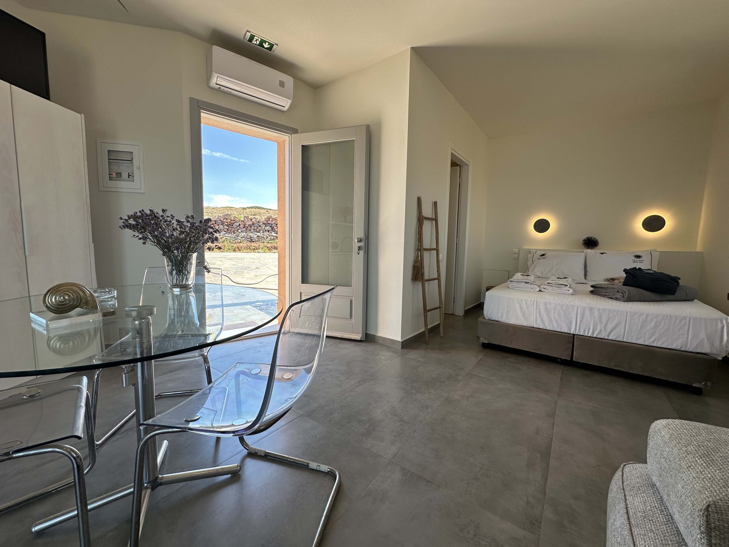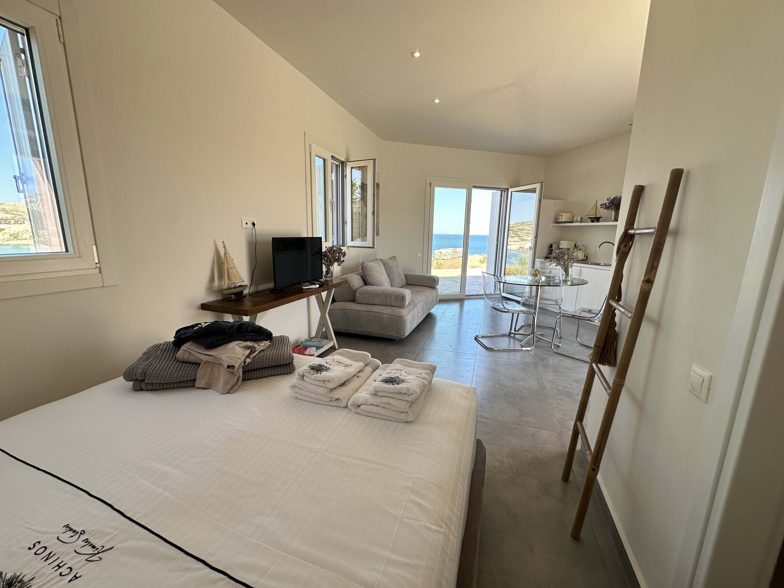 Το studio ΑΠΟΛΛΩΝ θα ικανοποιήσει πλήρως τις ανάγκες σας προσφέροντας σας κάθε είδους άνεση και συνδυάζοντας το χαρακτηριστικό κυκλαδίτικο στυλ διακόσμησης με την απλότητα και τις γήινες αποχρώσεις. Χαλαρώστε στην ιδιωτική σας βεράντα υπό τους ήχους της φύσης και την απαράμιλλη θέα του Αιγαίου Πελάγους.